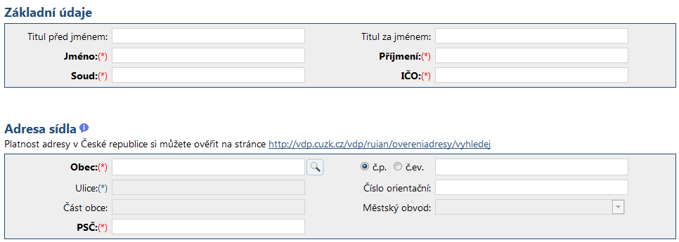 Pro zadávání adresy platí stejná pravidla jako pro zadávání adres u jiných subjektů, viz Jak vyplnit adresu.