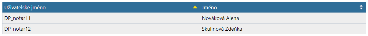 V záhlaví sloupečku "Uživatelské jméno" je ikonka šipky