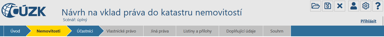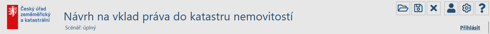 •Pod nadpisem "Návrh na vklad práva do katastru nemovitostí" je uveden typ vybraného scénáře.