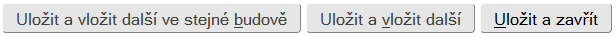 Po zadání údajů o konkrétní nemovitosti je možno vkládat další nemovitosti stisknutím tlačítka umístěného v pravé dolní části obrazovky - tlačítka Uložit a vložit další (v případě zadávání jednotky je možno využít také tlačítko umístěné v pravé dolní části obrazovky - tlačítko Uložit a vložit další ve stejné budově).