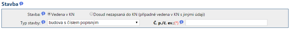 Pro případ, kdy zadáte jiný typ stavby než budova s číslem popisným nebo s číslem evidenčním, není samozřejmě vyžadováno zadání pole "Č. p./č. ev.".