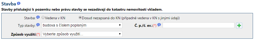 Pro dosud nezapsanou samostatnou stavbu je povinné zadat způsob využití nezapsané stavby.