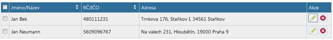 Sloupeček "Adresa" obsahuje buď trvalou adresu fyzické osoby, nebo adresu sídla právnické osoby.