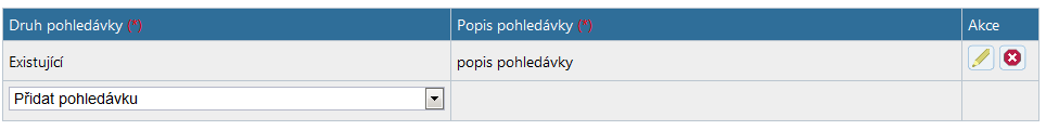 Ve sloupečku "Druh pohledávky" vyberte z rozbalovacího seznamu položku, která odpovídá pohledávce. Jakmile vyberete druh pohledávky, zpřístupní se pole pro zadání popisu pohledávky.
