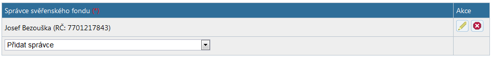 ve sloupečku "Akce" slouží k tomu, abyste mohli změnit oprávněnou osobu i jinak, než tím, že řádek vymažete a nahradíte novým. Po kliknutí na ikonu se na řádku opět objeví rozbalovací seznam se seznamem účastníků a můžete vybrat jiný subjekt.