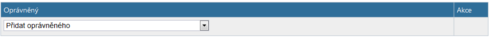 Tabulka pro zadávání oprávněných osob umožňuje přidat osobu výběrem z rozbalovacího seznamu, ve kterém jsou všichni účastníci ze seznamu účastníků kromě těch, kteří jsou již do této tabulky přidáni.