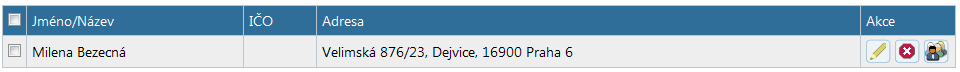 Sloupeček "Adresa" obsahuje buď trvalou adresu fyzické osoby, nebo adresu sídla právnické osoby.