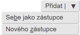 Pro seznam zástupců má tlačítko Přidat tyto možnosti: