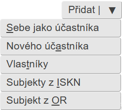 Přihlášení uživatelé (například ti, kteří jsou přihlášeni přes aplikaci Dálkový přístup) mohou mít k dispozici ještě navíc volbu Subjekty z ISKN (Přidání subjektů z ISKN).