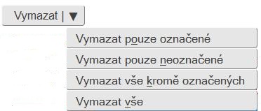 Pokud chcete vymazat jen některé ze zástupců zobrazených v seznamu, je potřeba je nejprve označit (kliknutím myší do bílého čtvercového políčka na začátku řádku, v němž je daný zástupce v seznamu uveden) a následně stisknout tlačítko Vymazat označené (pokud neprovedete označení alespoň jednoho ze zástupců, nebude tlačítko přístupné). Tlačítko Vymazat označené pracuje pouze se zástupci na dané stránce!