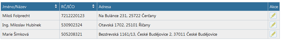 ve sloupečku „Akce“ slouží k editaci údajů o vlastníkovi.