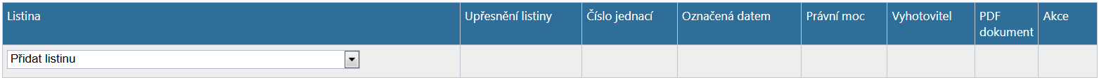 Sloupeček "Číslo jednací" je nepovinný a můžete si do něj poznamenat číslo jednací zadávané listiny.