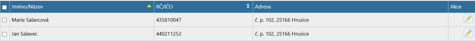 Chcete-li editovat údaje subjektu, klikněte na ikonku